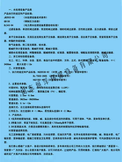 各類水處理設備及化工防腐設備